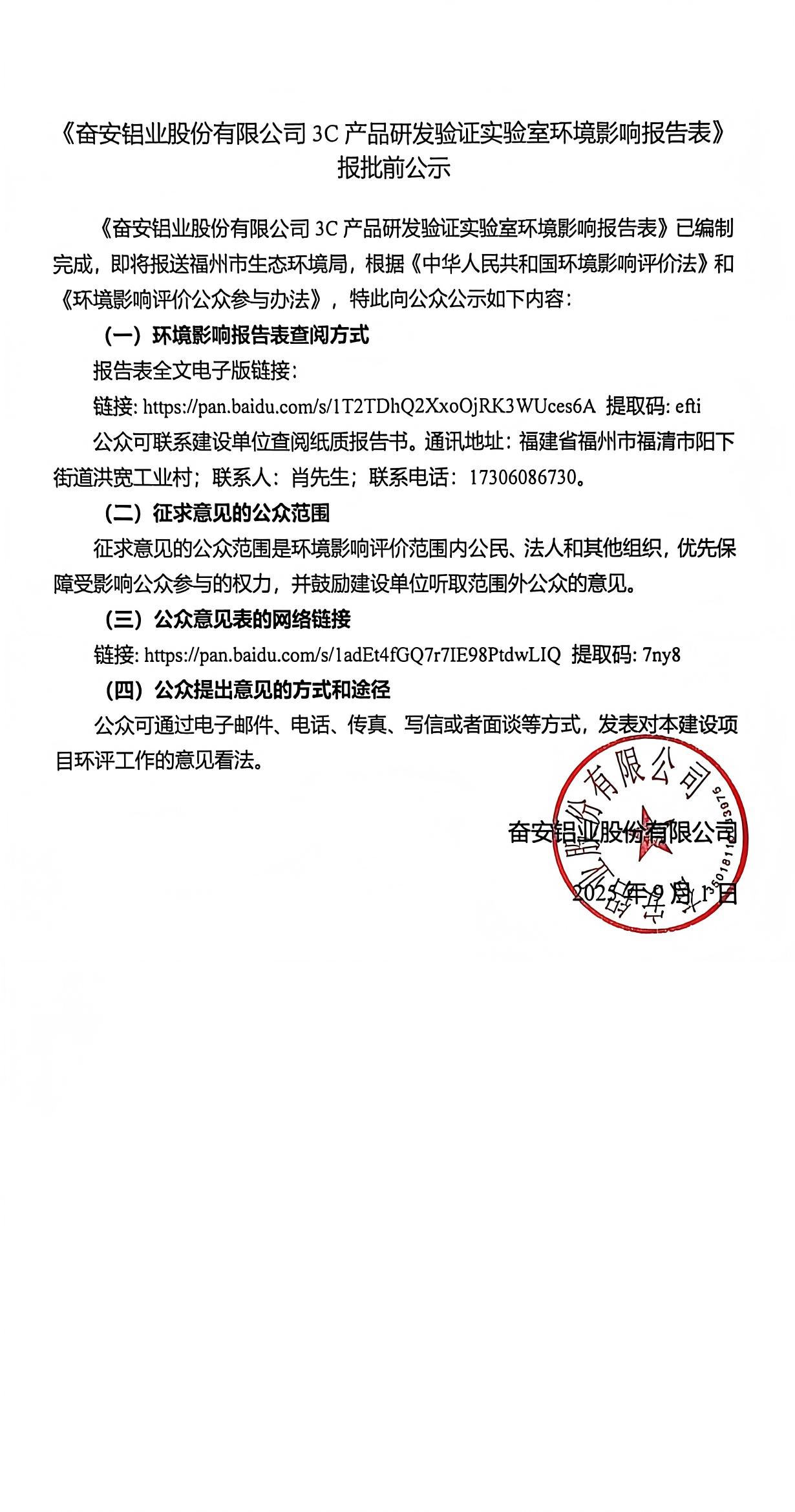 奮安鉬業(yè)股份有限公司 3C產(chǎn)品研發(fā)驗(yàn)證實(shí)驗(yàn)室環(huán)境影響報(bào)告表